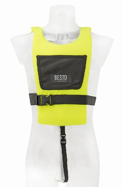 Besto heeft al meer dan 90 jaar kennis en ervaring op het gebied van persoonlijke reddingsmiddelen en heeft alle Europese certificaten. Een zwemvest helpt je met drijven, maar is niet gemaakt om je te redden. Zorg er daarom voor dat je een zwemvest alleen draagt wanneer je je op binnenlandse wateren of beschut water bevindt, waar hulp snel aanwezig kan zijn.