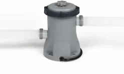 Dit zwembad wordt geleverd met filterpomp inclusief bijbehorende slangen en een filter. De filterpomp die wordt meegeleverd heeft een pompcapaciteit van 1.060 liter per uur. In ongeveer 3,5 uur heeft de pomp het zwembadwater volledig rondgepompt. Denk eraan om iedere twee weken de filter te vervangen. De filter cartridge die je nodig hebt voor de meegeleverde filterpomp is de Bestway Filter Cartridge – Type I.
