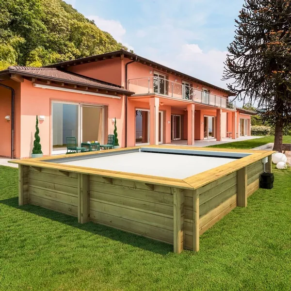 Tip: Als je het stadszwembad half of volledig in wilt graven is het verplicht om een houten omkasting te plaatsen om ervoor te zorgen dat de zwembadtechniek toegankelijk blijft. Speciaal daarvoor bieden we ook deze variant aan van het BWT stadszwembad met zandfilterpomp en houten omkasting