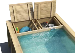 De Pool ‘n Box is uitgerust met een handige opbergbox aan de korte zijde. De geïntegreerde opbergbox is gemaakt van hetzelfde houtsoort als het zwembad en het profiel is gelijk aan de boordplanken zodat dit een mooi geheel vormt. Voor de optimale veiligheid is de box voorzien van een gevertificeerd veiligheidsslot. Naast speelgoed, luchtbedden en handdoeken kun je in de opbergbox ook al het randapparatuur netjes wegwerken.