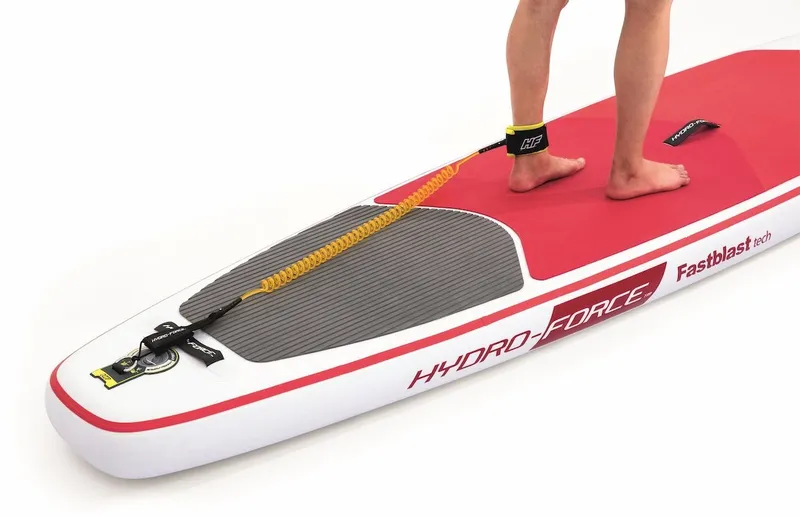 Het opblaasbare Hydro Force Fastblast Tech supboard is gemaakt van een kern van polyester, met daaromheen twee lagen gelamineerd PVC. Misschien zegt je dit niet zoveel, maar dit betekent dat het board niet snel lek gaat, UV-bestendig is en tegen zout water kan. De ‘dropstitch’ techniek is super sterk en combineert stevigheid met licht gewicht. Het resultaat? Een heel sterk supboard dat makkelijk te besturen en licht en draagbaar is.
