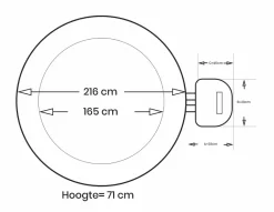 Let op: Om de Intex Pure Spa Bubble Therapy volledig (inclusief motorblok van 38x46x38 cm) te kunnen plaatsen, adviseren wij een minimale (tuin)ruimte van 300 bij 220 cm. De kabel is 3,5 meter lang, dus zorg dat er binnen deze lengte een stroomvoorziening aanwezig is.