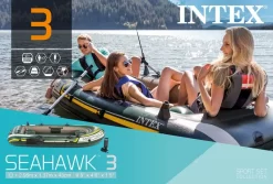 De Intex Seahawk 3 is een geliefde opblaasboot door vissers. Door de twee hengelsteunen op de Intex Seahawk 3 is deze uitermate geschikt voor vispartijen. Natuurlijk is de Intex Seahawk 3 ook geschikt voor de gewone, plezier vaartochten. Verder heeft de Intex Seahawk 3 drie luchtkamers. Mocht er een luchtkamer lek raken, dan kan je altijd veilig terugkeren naar de kant. Om de veiligheid altijd te kunnen garanderen, is het aanbevolen een reddingsvest of zwemvest te dragen tijdens het varen met de Intex Seahawk 3.