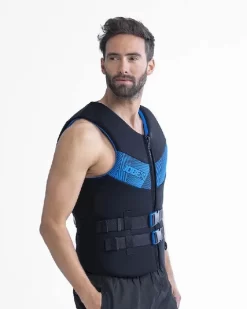Op de voorkant van de Jobe Neopreen zijn verstelbare boord banden met gespen en een sterke rits bevestigd. Door de gespen blijft het zwemvest ook nog op z’n plaats als de rits door omstandigheden kapot gaat. Bij Jobe staat veiligheid hoog in het vaandel en dat is te merken aan deze dubbele maatregelen. Daarnaast kan een dodemanskoord worden vastgemaakt aan de voorkant van de Jobe Neopreen en is het zwemvest voorzien van een waterafvoersysteem. Zo wordt het zwemvest niet zwaar van het water.
