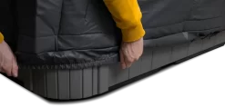Het bevestigen van deze beschermhoes is echt een fluitje van een cent. Leg de spa beschermhoes op de spa en sluit deze met de rits. Door de elastische banden aan de onderkant blijft de beschermhoes automatisch goed op zijn plek liggen. Maak gebruik van de verstelbare banden en je beschermhoes zit als gegoten om je spa heen. Dit zorgt wederom voor een betere isolatie en dat er nog minder warmte verdwijnt!
