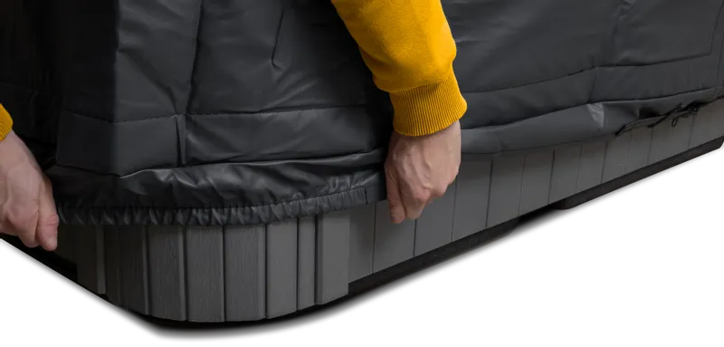 Het bevestigen van deze beschermhoes is echt een fluitje van een cent. Leg de spa beschermhoes op de spa en sluit deze met de rits. Door de elastische banden aan de onderkant blijft de beschermhoes automatisch goed op zijn plek liggen. Maak gebruik van de verstelbare banden en je beschermhoes zit als gegoten om je spa heen. Dit zorgt wederom voor een betere isolatie en dat er nog minder warmte verdwijnt!